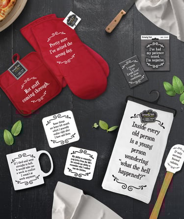 - APRONS - OVEN MITTS - POTHOLDERS -